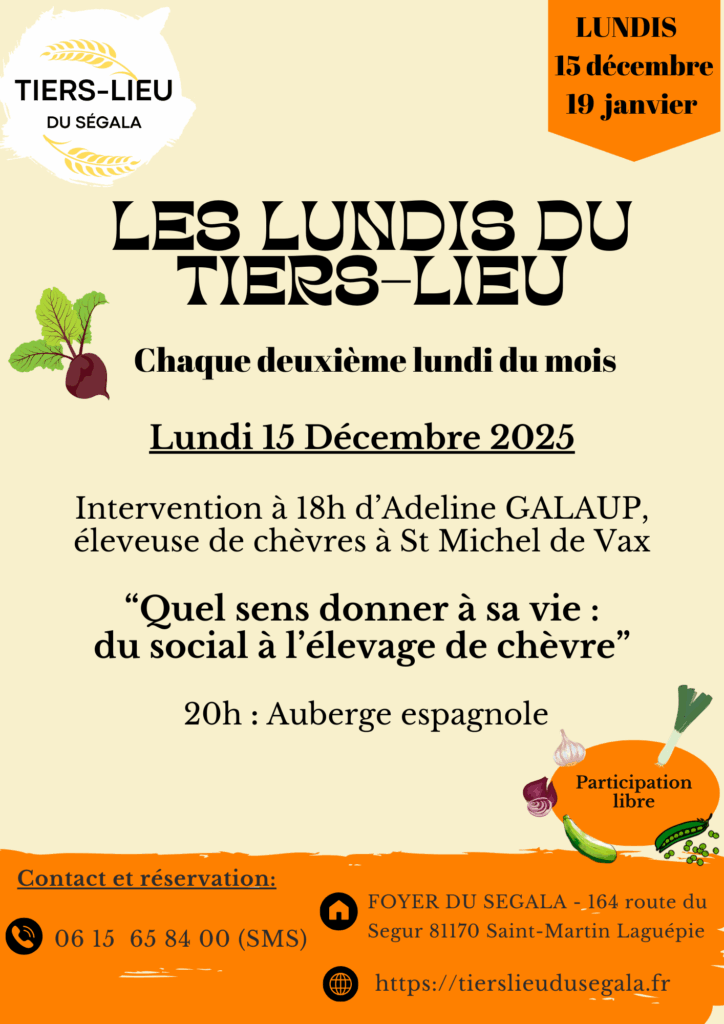 Lundi 09 décembre : Assemblée Générale Ordinaire du Tiers-Lieu du Ségala à partir de 18H !
